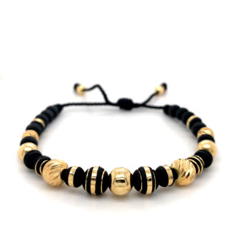«Una elegancia imponente, cada esfera cuenta una historia: pulsera en oro de 18k con esferas negras, tu declaración de estilo sofisticado.»